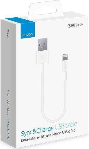 Кабель USB - Lightning Deppa (72230) Apple 8-pin (белый) 3м