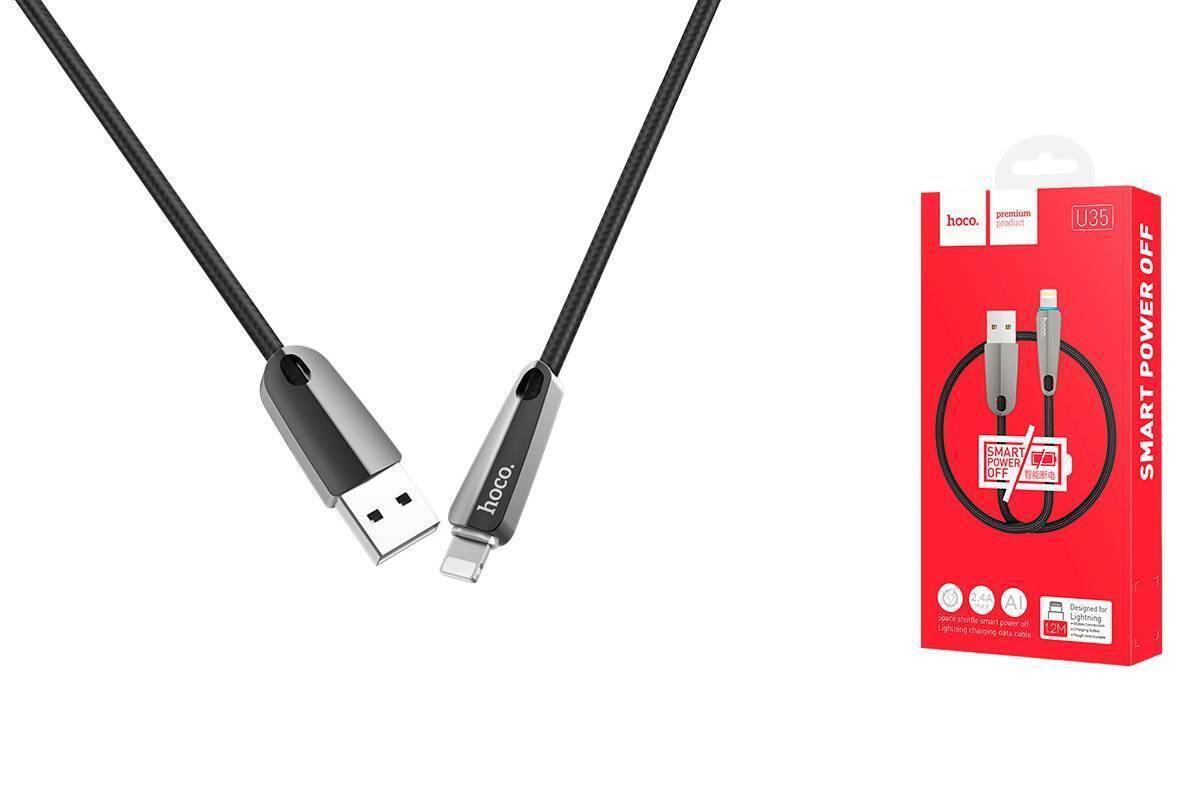 Кабель USB - Lightning HOCO U35 2,4A (черный) 1,2м (авто отключение)