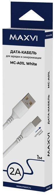 Кабель USB - MicroUSB Maxvi (MC-01L) 2A (белый) 1м
