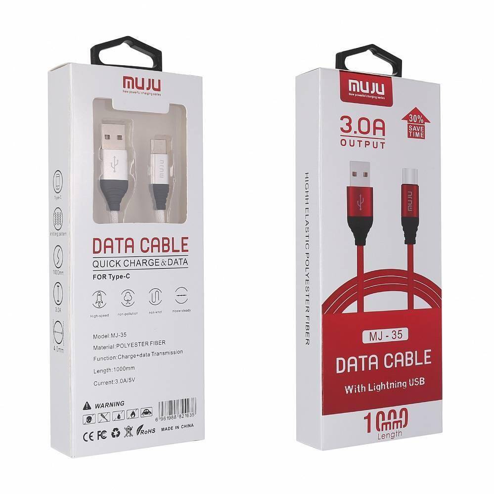 Кабель USB - USB Type-C MUJU MJ-35, 3A (красный) 1м (в оплетке)