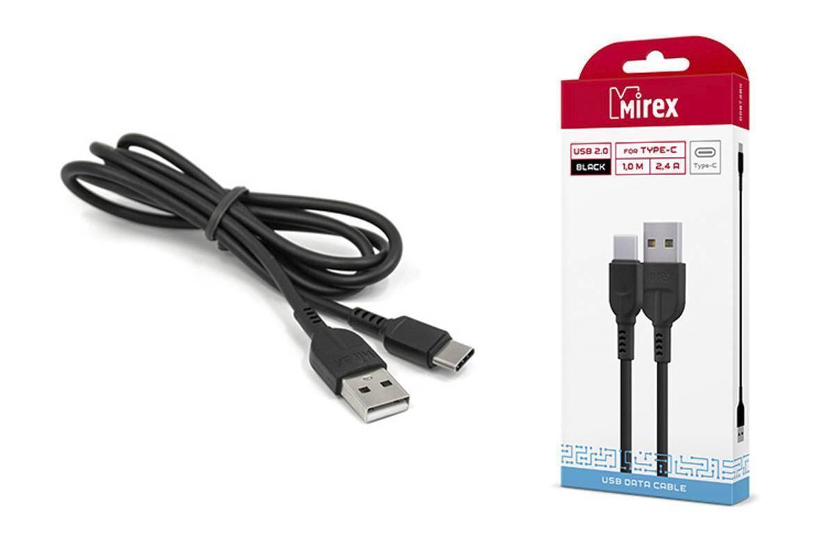 Кабель USB - USB Type-C Mirex 2.4A, (чёрный) 1м (в коробке 1/48 (bc008t))