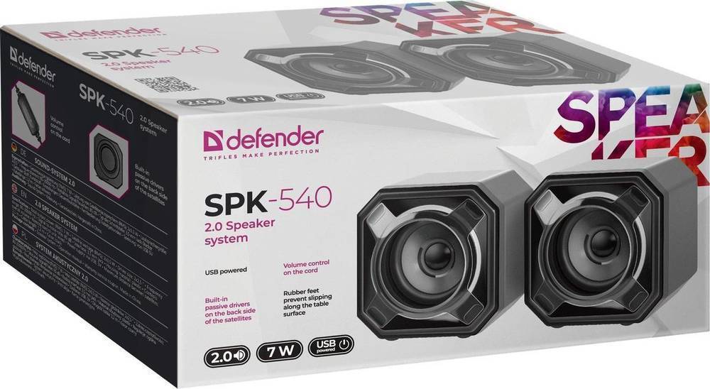 Акустическая система 2.0 Defender SPK-540 7 Вт, питание от USB (черный) 20077096