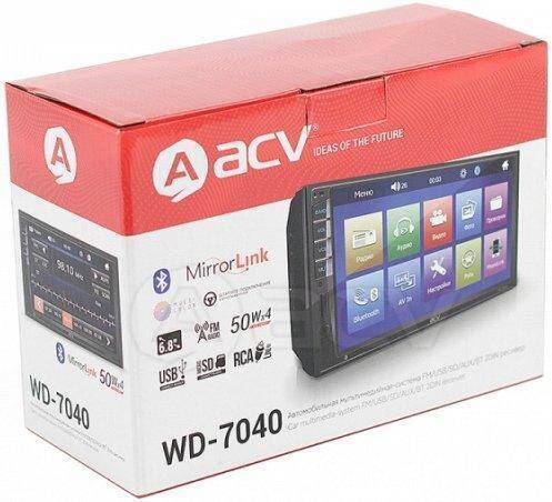 Магнитола ACV WD-7040 - новое решение для получения полноценного мультимедиа в автомобиле. Она поддерживает MirrorLink, Bluetooth, iPod и Android, интерфейс кнопок управления на руле, исполнена в современном дизайне. Она позволит использовать в автомобиле гораздо больший функционал: беспроводные технологии для воспроизведения контента, навигацию через смартфон (опция MirrorLink), удобное управление через сенсорный экран, а также камеру заднего вида.