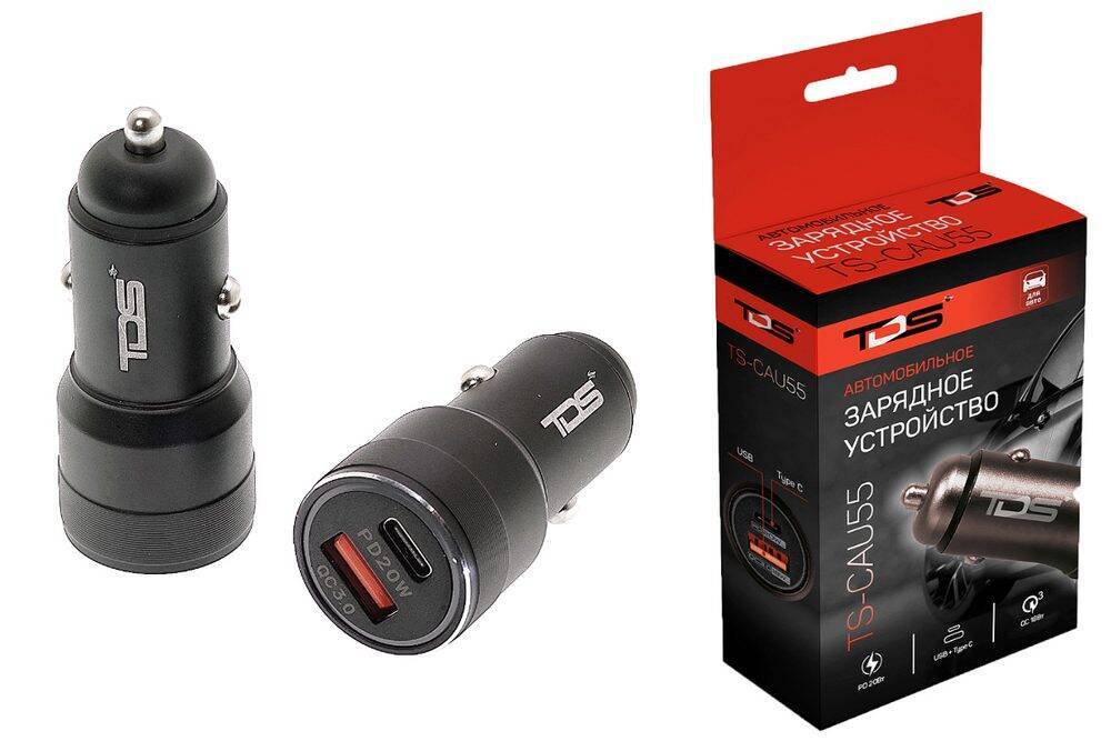 Автомобильное зарядное устройство АЗУ TDS TS-CAU55 ЗУ авто USB (PD20W+QC3.0, 3000mA) Черный 20129860