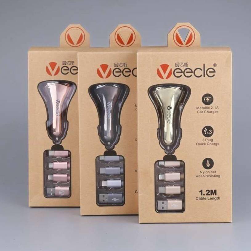 Автомобильное зарядное устройство АЗУ USB + кабель MicroUSB VEECLE HM-C13 MicroUSB/Type-C/iPhone (5B,2100mA) (золотистый) 20051581