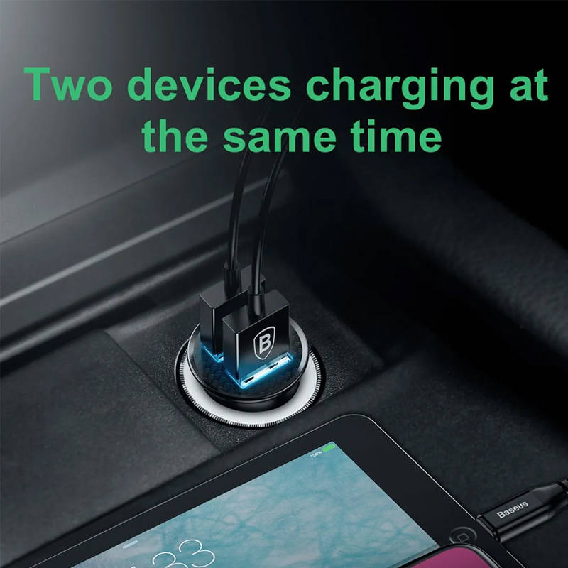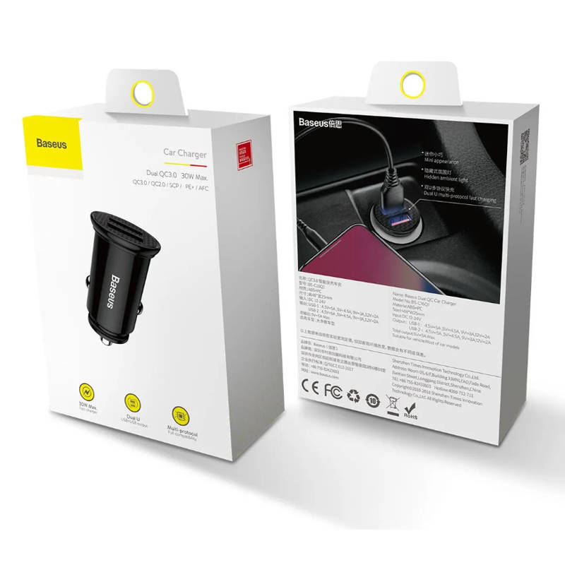 Автомобильное зарядное устройство BASEUS Circular Plastic, 2*USB, 5A, 30 Вт, черный, быстрая зарядка 20103906
