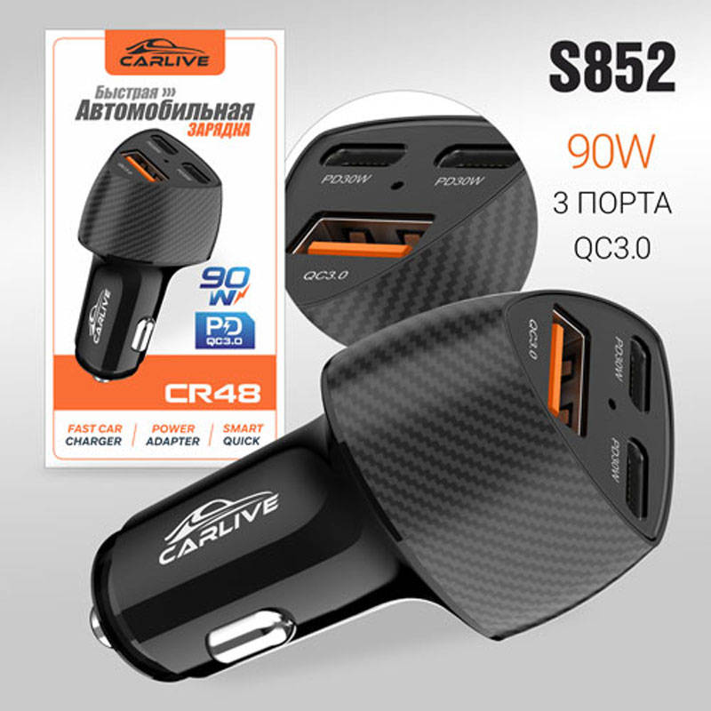 Автомобильное зарядное устройство Carlive CR48 QC3.0 + PD30W + PD30W (Black) 20pcs 20217676