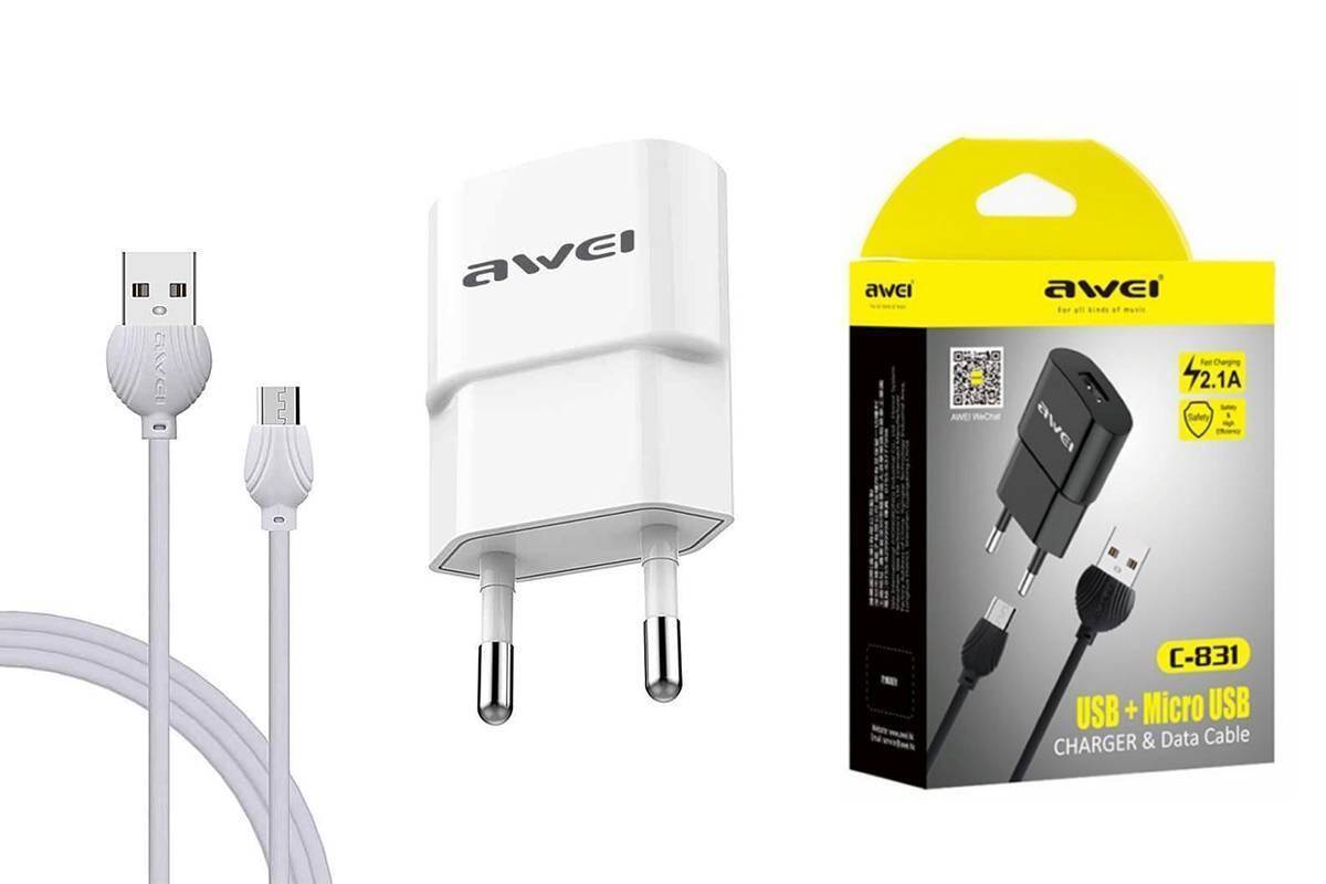 Сетевое зарядное устройство USB + кабель Lightning AWEI C-832 (белый)
