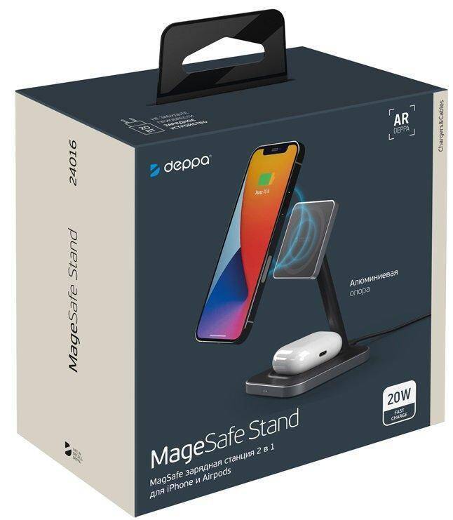 Беспроводное зарядное устройство 2 в 1 Deppa (24016) станция (черный) 20075389