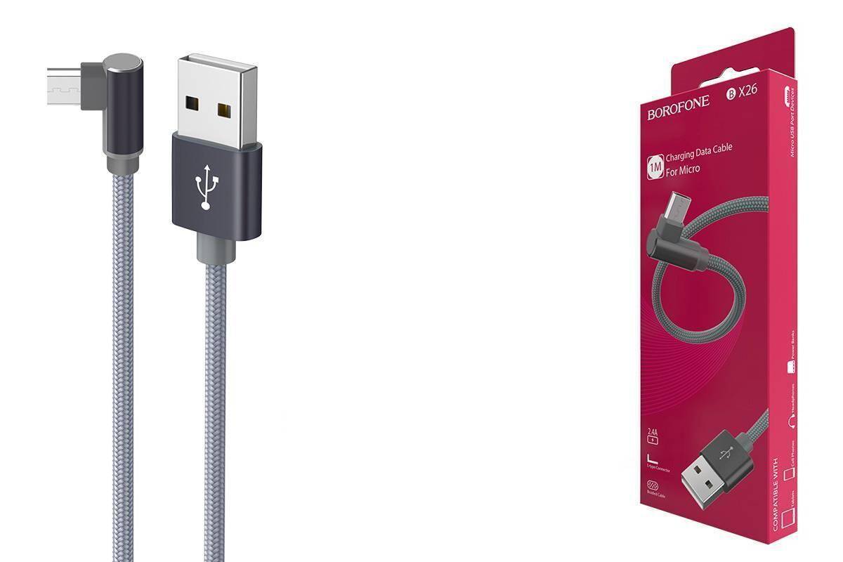 Кабель USB - MicroUSB BOROFONE BX26 2,4A (серый) 1м (в оплетке, Г-образный коннектор)