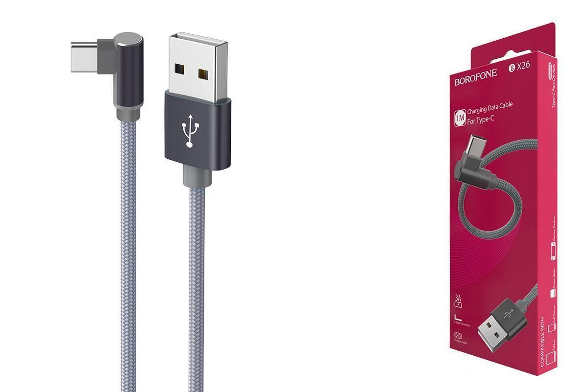 Кабель USB - USB Type-C BOROFONE BX26, 3A (серый) 1м (в оплетке, угловой)