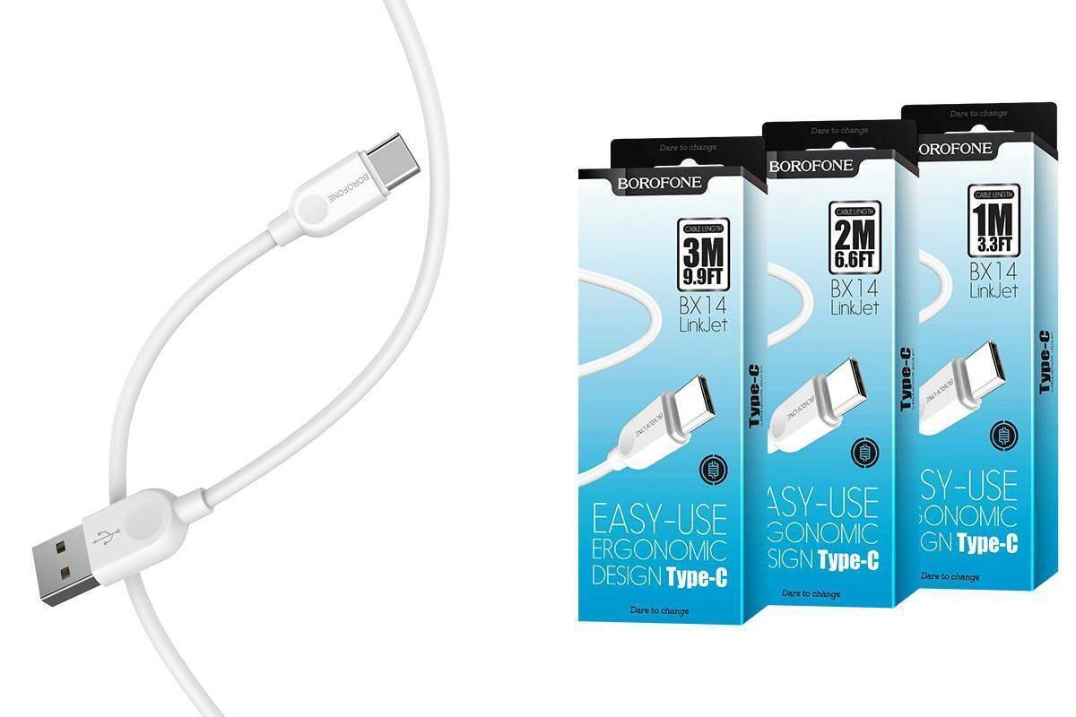Кабель USB - USB Type-C BOROFONE BX14, 2A (белый) 3м Кабель USB - USB Type-C BOROFONE BX14, 2A (белый) 3м
