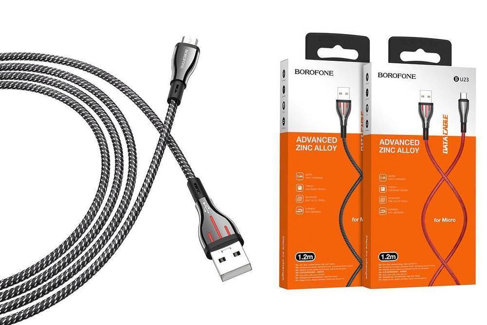 Кабель USB - MicroUSB BOROFONE BU23 2,4A (серый) 1,2м (в оплетке)