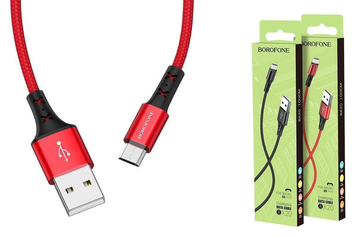 Кабель USB - MicroUSB BOROFONE BX20 2A (красный) 1м (в оплетке)