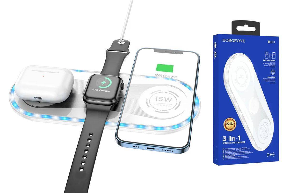 Беспроводное зарядное устройство BOROFONE BQ14 Absolute 3 in 1 22.5W (белый)