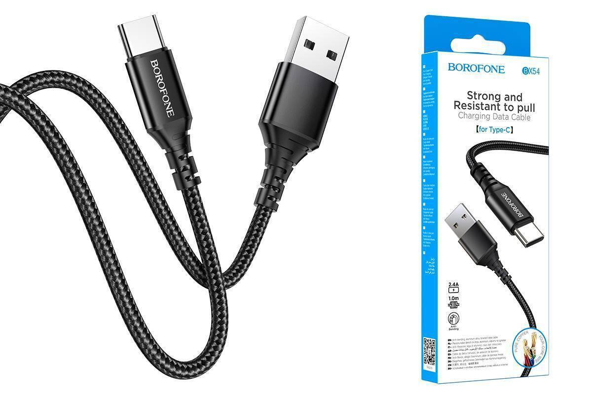 Кабель USB - USB Type-C BOROFONE BX54, 2,4A (черный) 1м (в оплетке)