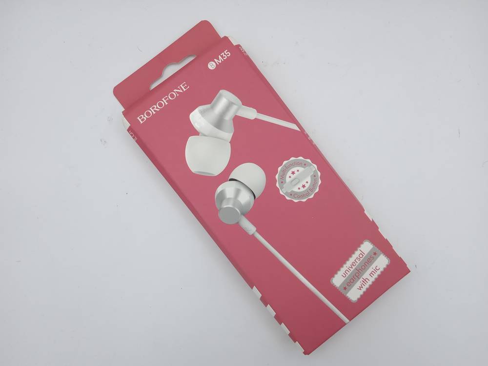 Наушники вакуумные проводные BOROFONE BM35 Farsighted universal earphones (серебристый) (УЦЕНКА! МЯТАЯ УПАКОВКА)