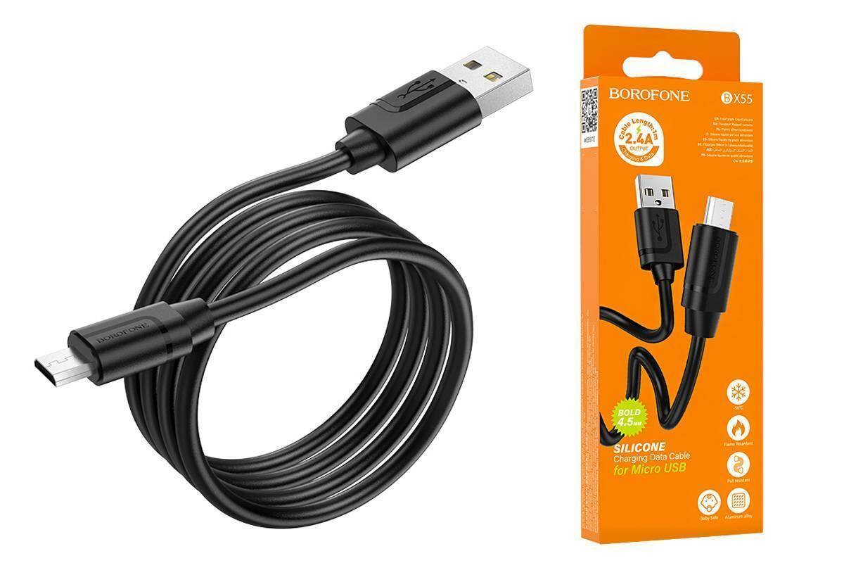 Кабель USB - MicroUSB BOROFONE BX55 2,4A (черный) 1м (силикон)