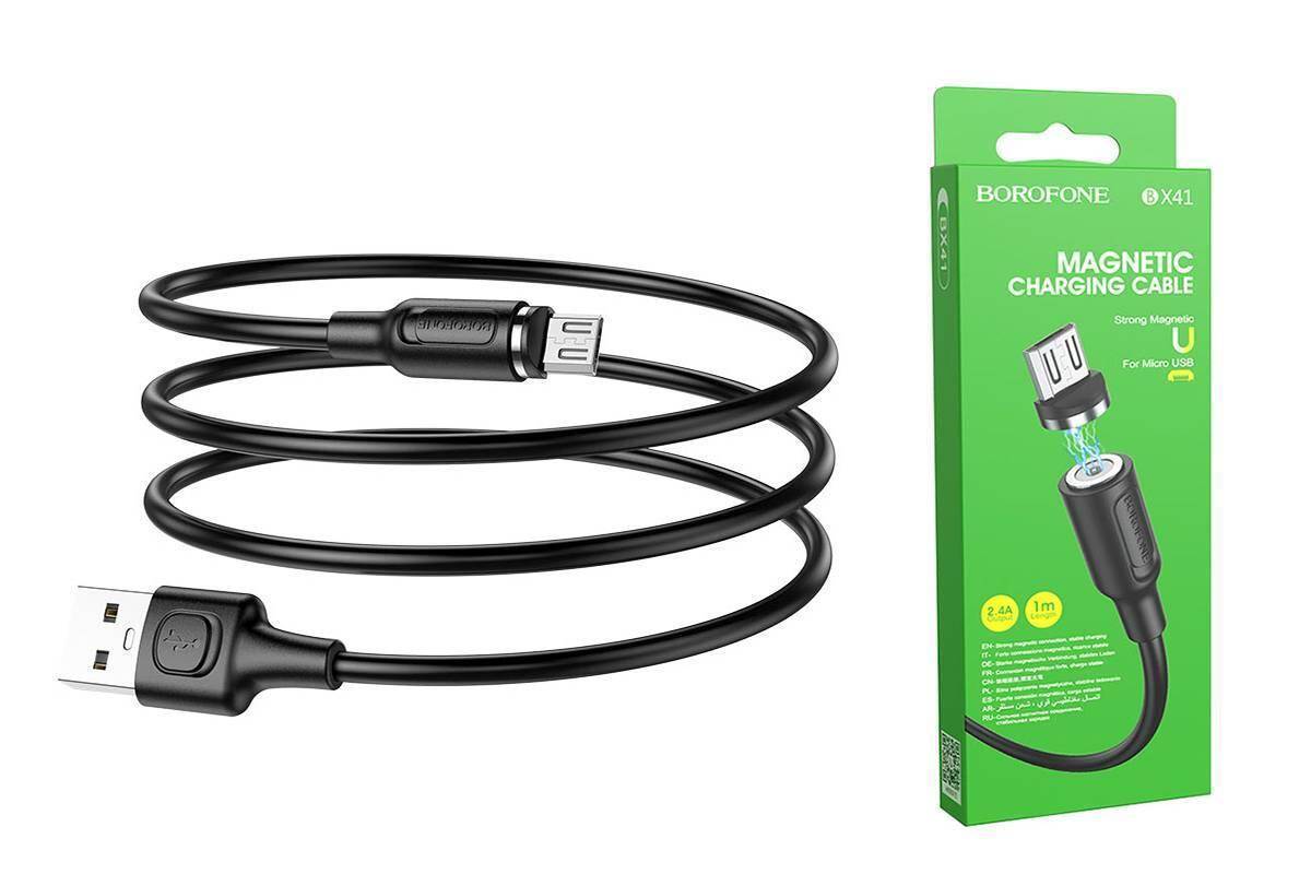 Кабель USB - MicroUSB BOROFONE BX41 2,4A (черный) 1м (магнитный)