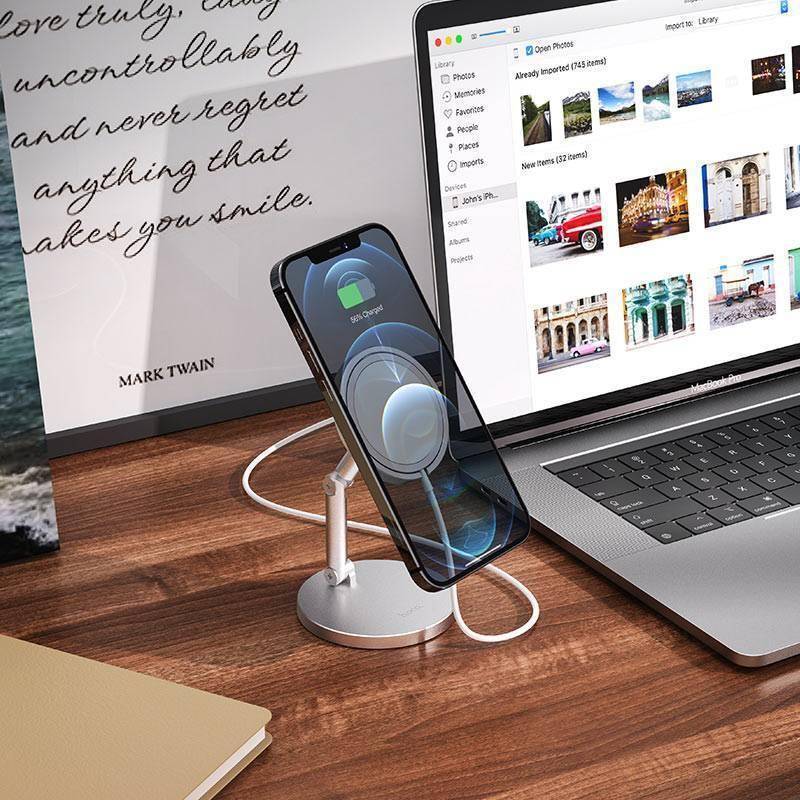 Держатель настольный для беспроводной магнитой зарядки MagSafe HOCO PH39 (серебристый) 20048277
