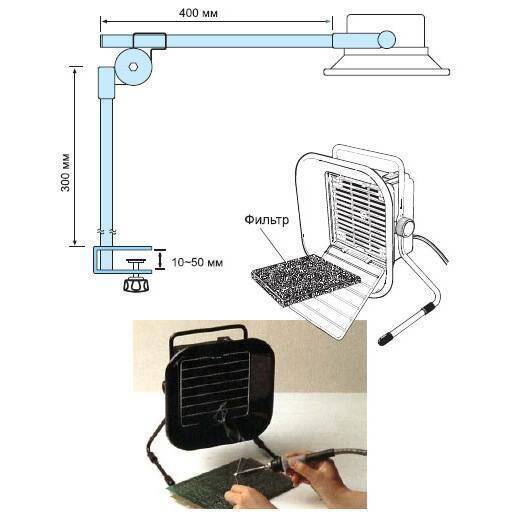 Мощный настольный поглотитель паяльного дыма. Высокопроизводительный вентилятор для эффективного поглощения вредных газообразных веществ.