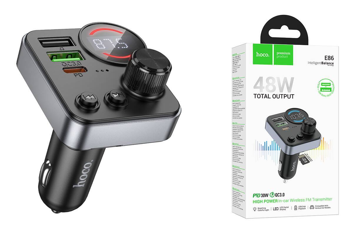 FM-Модулятор HOCO E86 Alegria 48W dual port PD30W+QC3.0 car (черный) 20205758
