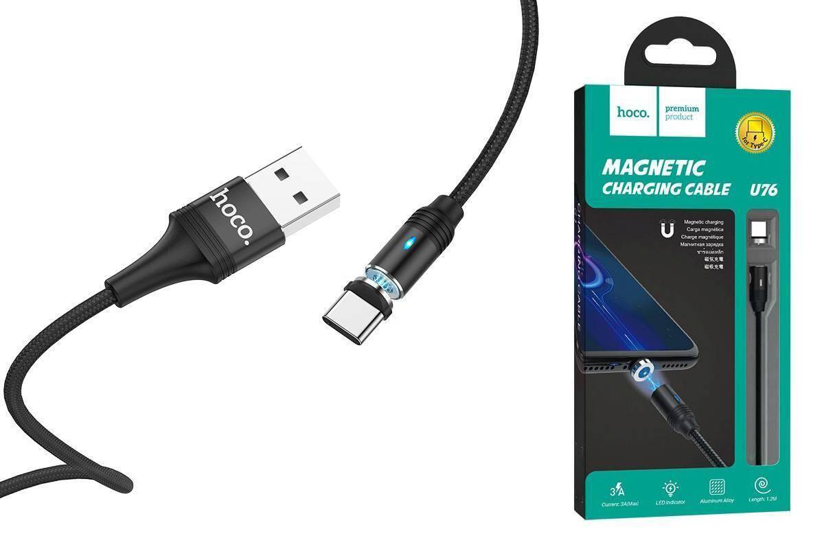 Кабель USB - USB Type-C HOCO U76, 3A (черный) 1,2м (магнитный, в оплетке, LED индикатор)