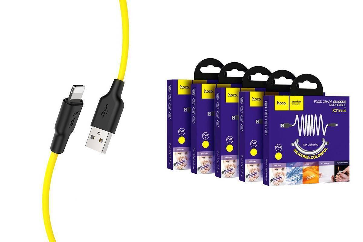 Кабель USB - Lightning HOCO X21 PLUS, 2,4A (черно-желтый) 1м (силиконовый)