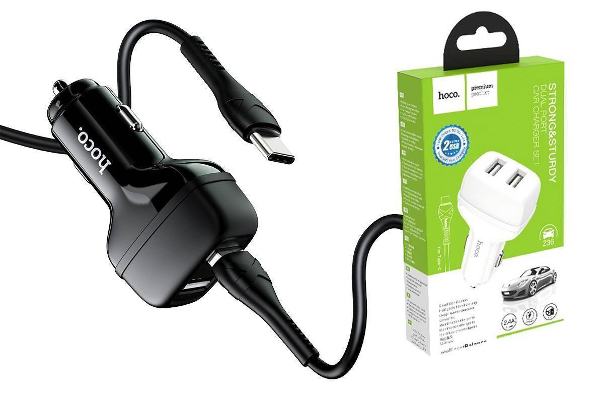 Автомобильное зарядное устройство АЗУ 2USB + кабель Type-C HOCO Z36 Leader 2400mAh (белый)