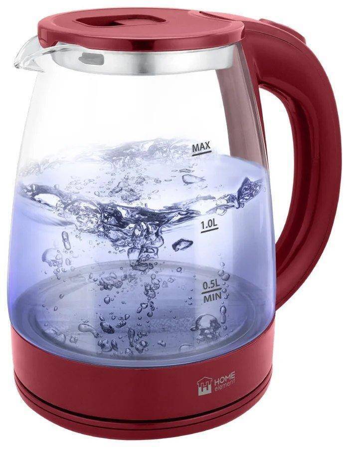 Чайник HOME ELEMENT HE-KT-185 бордовый гранат 1800 Вт, 2 литра, СТЕКЛО
