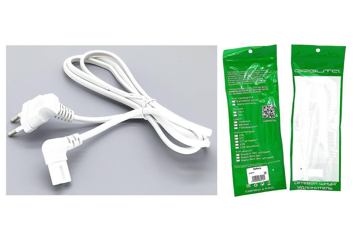 Кабель питания сетевой Орбита OT-ELS07 Белый угловой (С7/2.5А) 1,5м 20046117