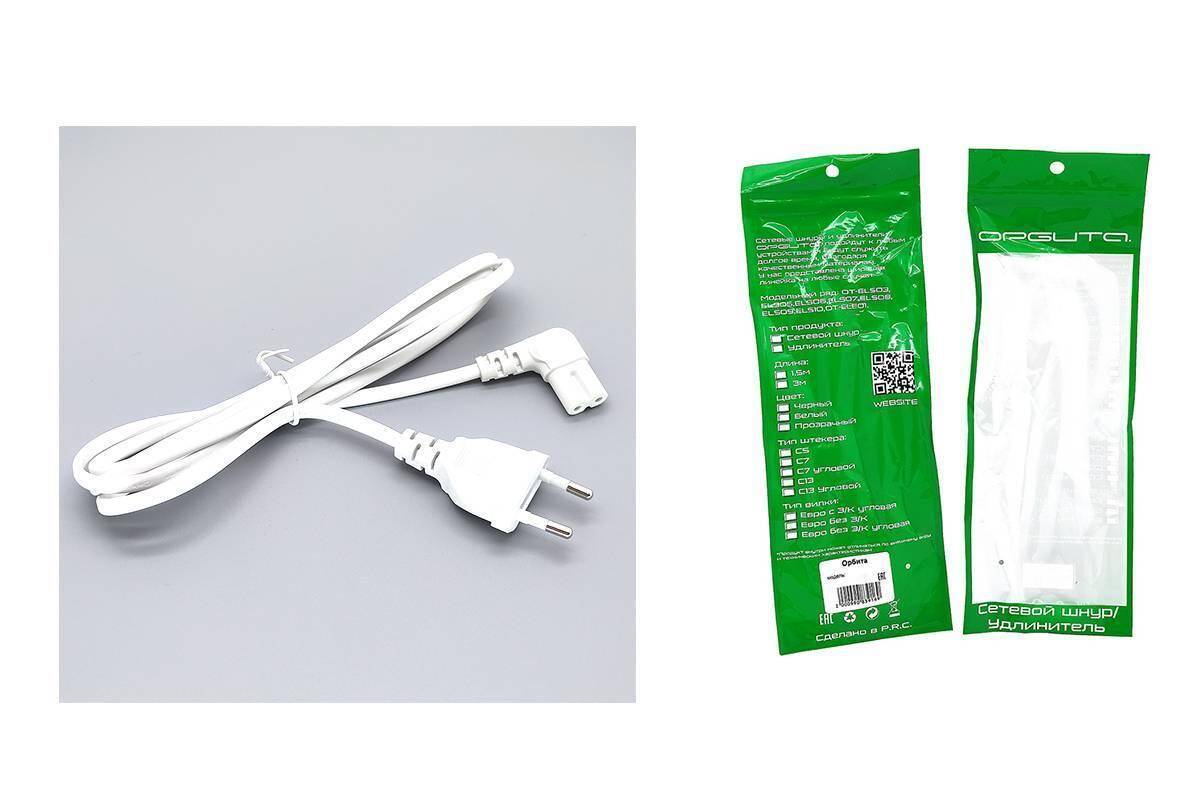 Кабель питания сетевой Орбита OT-ELS10 Белый угловой (С7/2.5А) 1,5м (1/113-1) 20046122