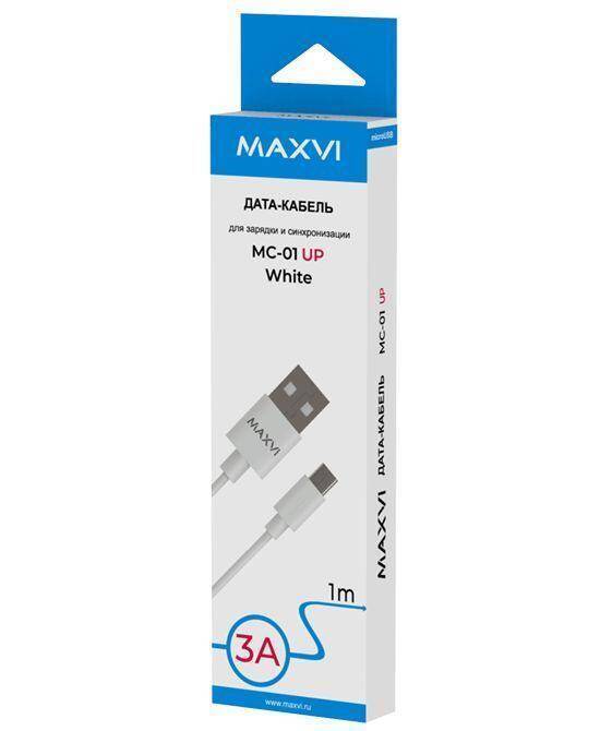 Кабель USB - MicroUSB Maxvi (MC-01 UP) 3A (белый) 1м 20075207