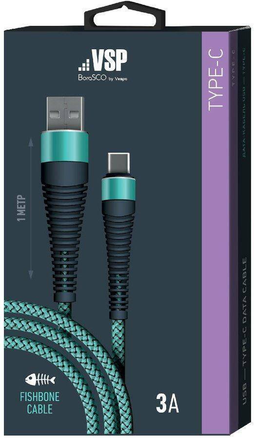 Кабель USB - USB Type-C BoraSCO (38506) Fishbone , 3A (тиффани) 1м 20075238
