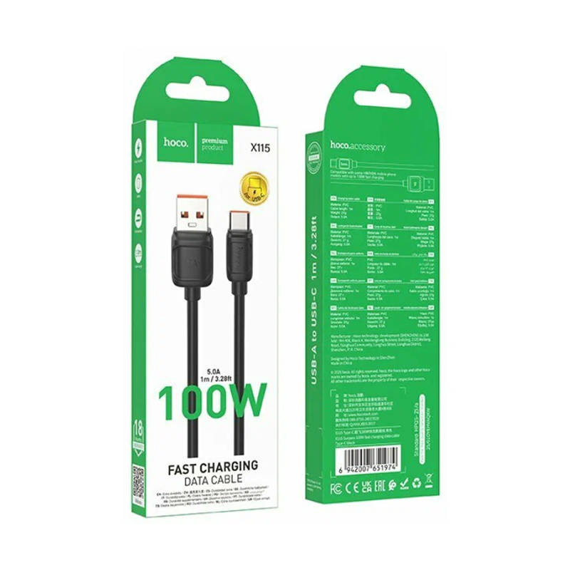Кабель USB - USB Type-C HOCO X115 Surpass 100W черный 20219974
