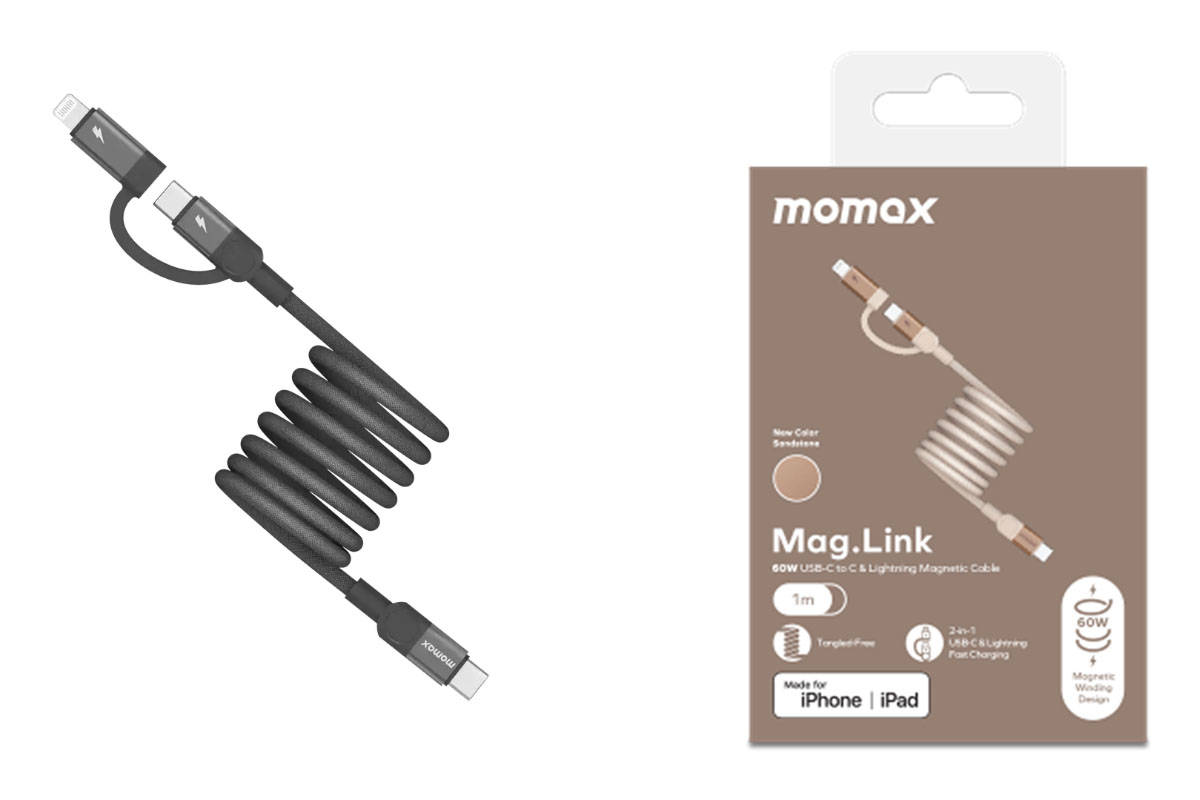 Кабель USB 2 в 1 MOMAX Mag.Link 60W USB-C to USB-C & Lightning Magnetic cable(DL58D) 1M Black 20217211