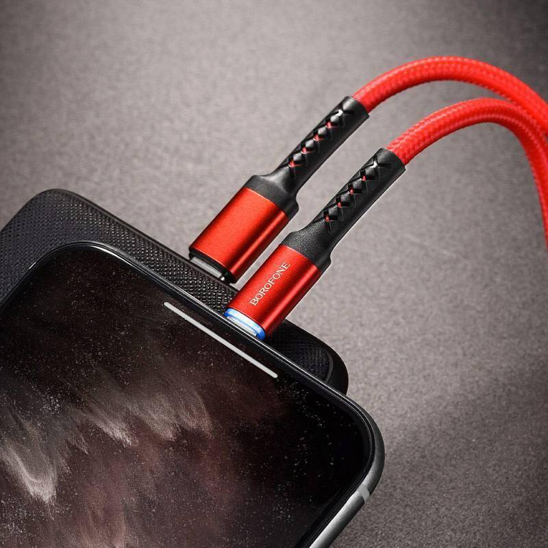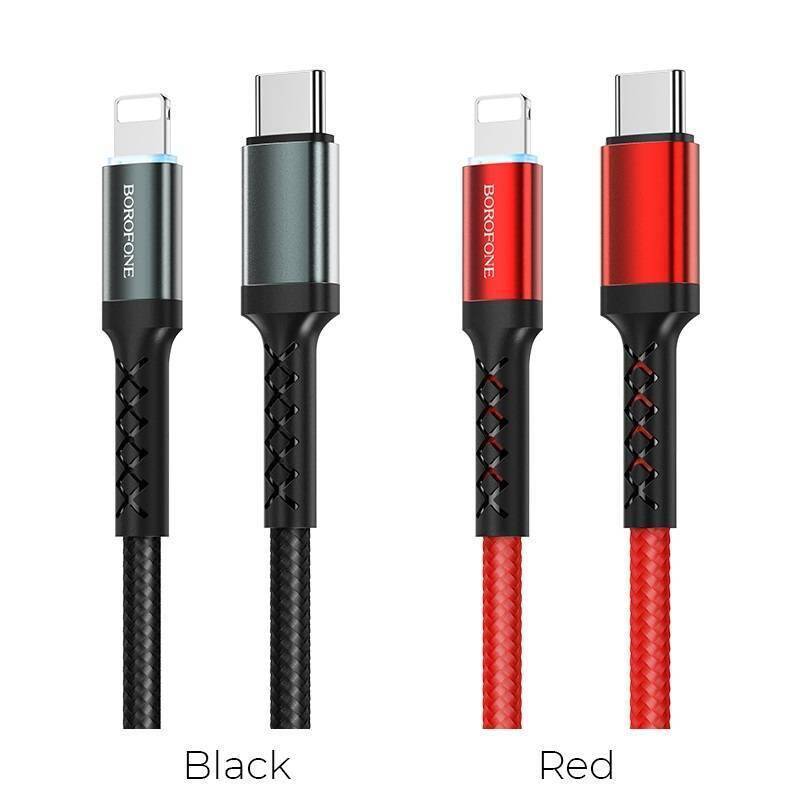 Кабель USB Type-C - Lightning BOROFONE BU22, 3A PD18W (красный) 1,2м (в оплетке, LED индикатор) 20039494