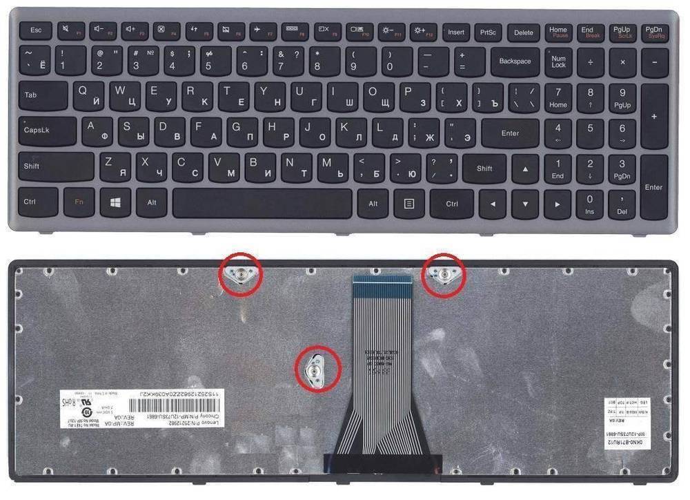 Клавиатура для ноутбука Lenovo IdeaPad Z510 с серой рамкой