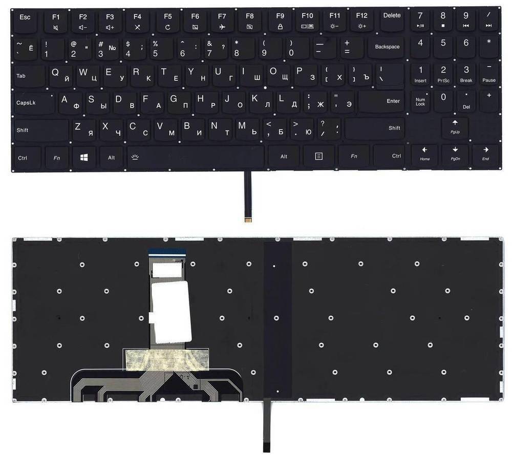 Клавиатура для ноутбука Lenovo Legion Y520 черная без рамки, белая подсветка 20040616