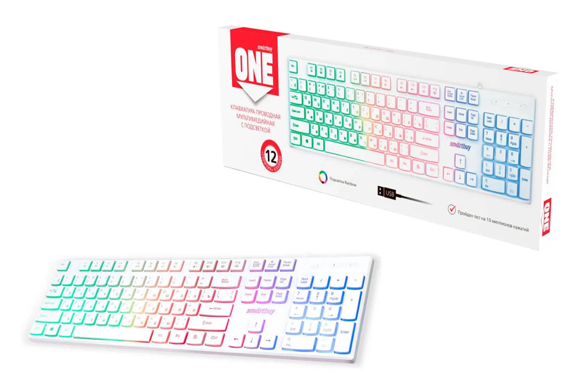 Клавиатура проводная с подсветкой Smartbuy ONE 251 USB белая (SBK-251U-W)/20 20213924