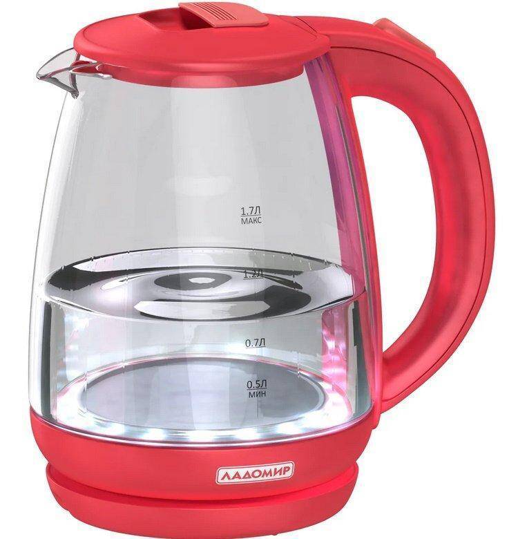 Чайник ЛАДОМИР АА119, красный 2000Вт, 1,8л, стекло, LED- подсветка
