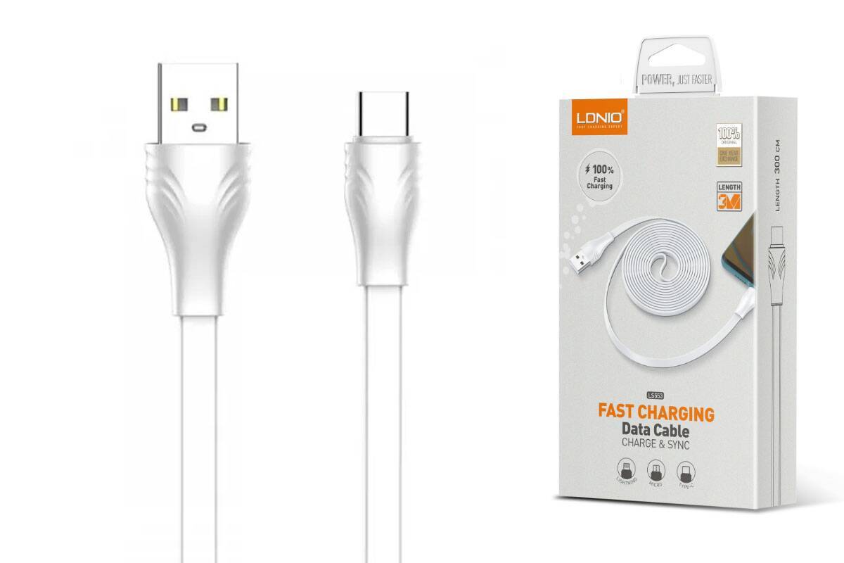 Кабель USB – USB Type-C LDNIO LS553 2.1A медь:152 жилы плоский (белый) 3м
