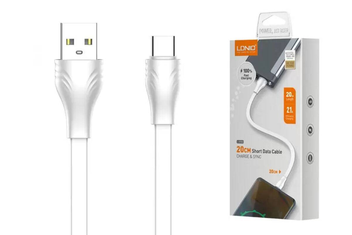 Кабель USB - USB Type-C LDNIO LS550/ 20 cm/ 2.4A/ медь: 60 жил/ Плоский/White (У)