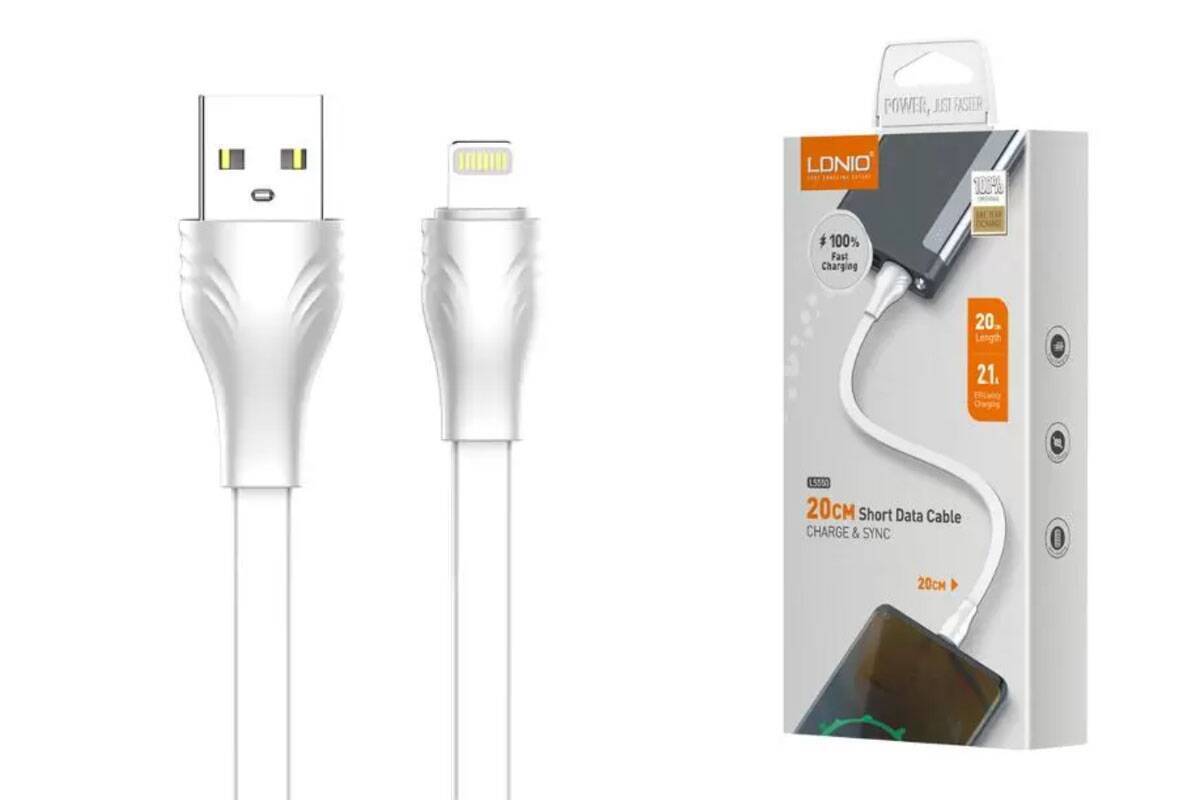 Кабель USB - Lightning LDNIO LS550/ 20 cm/ 2.4A/ медь: 60 жил/ Плоский/ White