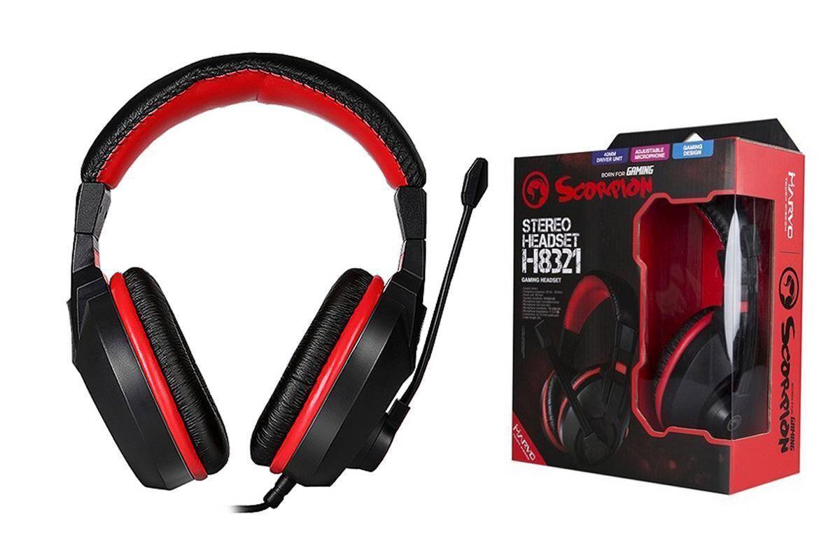 Наушники мониторные проводные с микрофоном MARVO H8321P полноразмерные 2м (черно-красный)