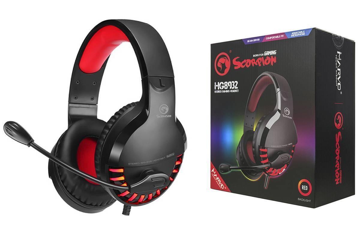 Наушники мониторные проводные с микрофоном MARVO HG8932 полноразмерные 2,1м (черно-красный)