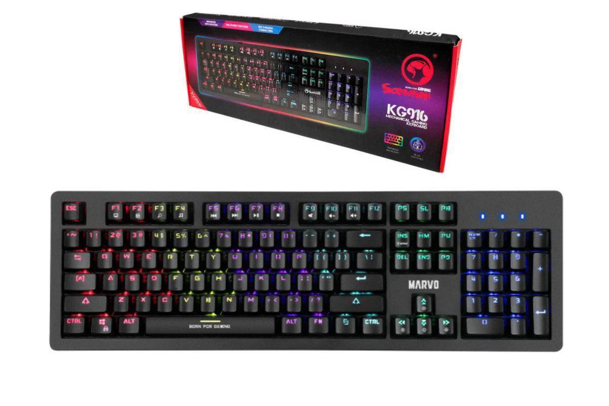 Клавиатура игровая механическая проводная MARVO KG916, подсветка RGB, 104 кл. USB (чёрный)