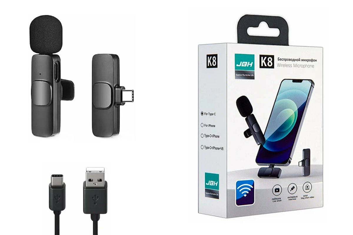 Микрофон беспроводной петличка K8 набор 2 штуки (черный) 20217887