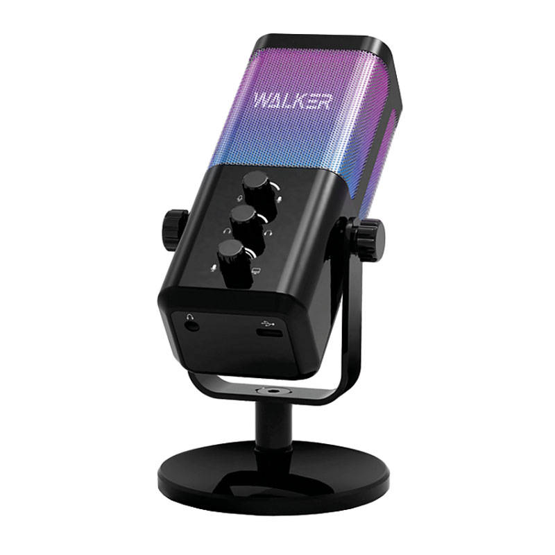 Микрофон для компьютера WALKER WCM-60, игровой, шумоподавление, рег. громкости и подсветки, черный 20221661