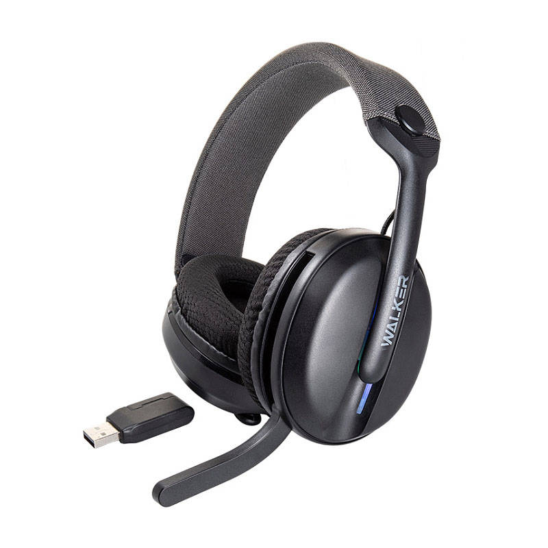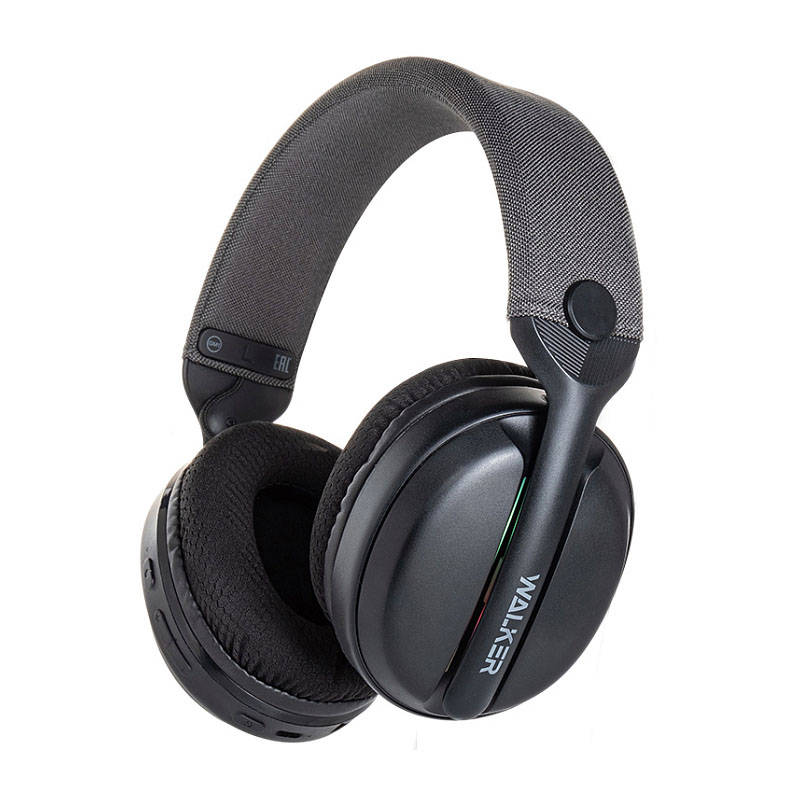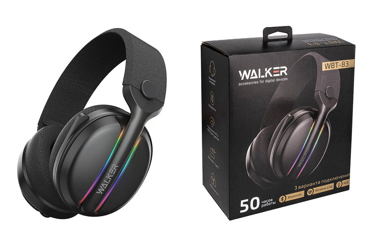 Наушники мониторные беспроводные WALKER WBT-83, Bluetooth, 3в1 (AUX, 2,4 ГГц), микрофон, подсветка, полноразм, черные 20221657
